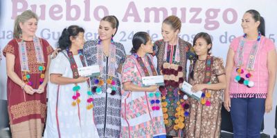 Claudia Sheinbaum y Evelyn Salgado entregan créditos a la palabra a mujeres amuzgas para impulsar la productividad y comercialización de huipiles y telares de cintura