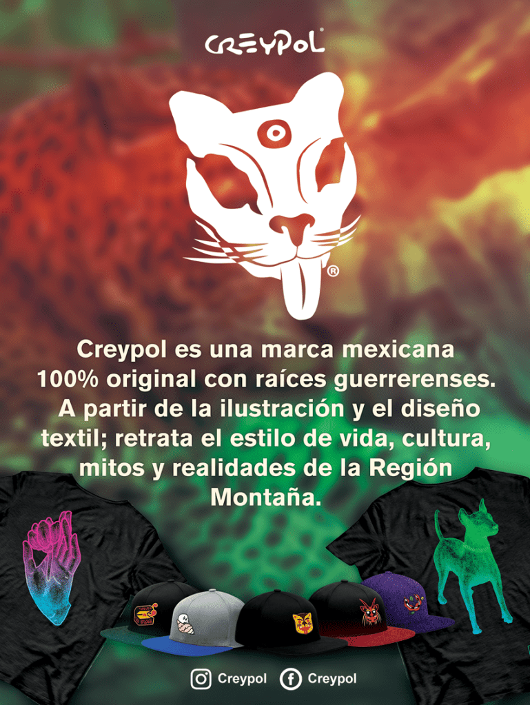 Creypol «es una marca 100% mexicana con raíces Guerrerenses. Establecida hace 6 años; producto de la fusión entre tradición y la modernidad aplicada en prendas de estilo urbano creando así nuestro estilo; el Sierra Wear«.