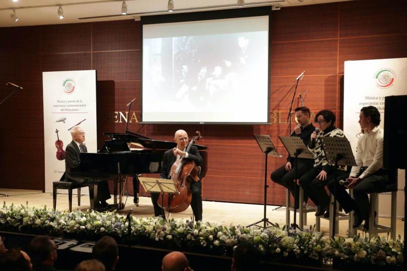 El pianista Edison Quintana y Carlos Prieto tocaron la pieza “Kol Nidrei” para violonchelo y piano, de Bruch. La narración y poesía estuvo a cargo de Rina Rajlevsky, Héctor Berzunza y Arie Milstein.