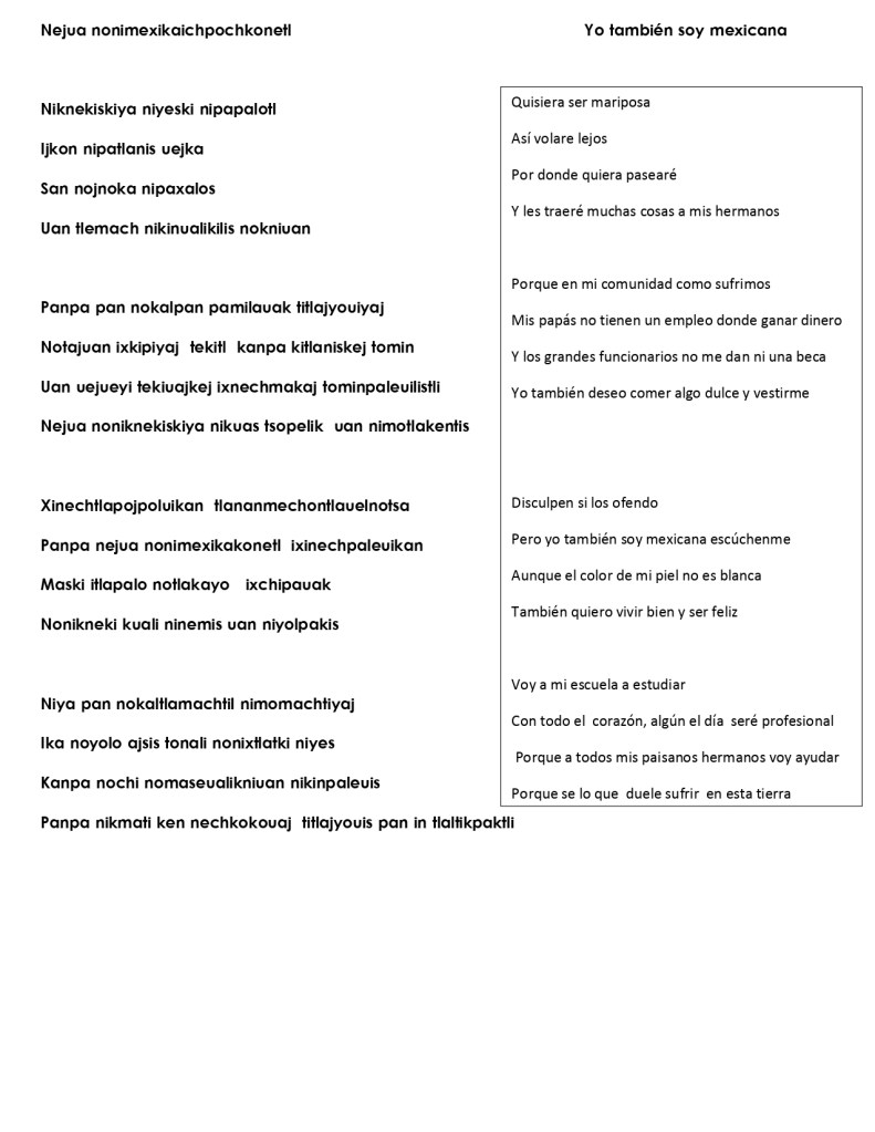 A continuación se muestra un poema escrito y recitado en lengua nahuatl: