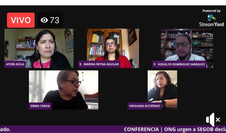 En la conferencia tomaron la palabra Emma Cerón y Viridiana Gutiérrez de OBVIO, Marina Reina, Aguilar, defensora integrante del Sistema integral para prevenir y erradicar la violencia contra las mujeres, Rodolfo Domínguez de Justicia, Derechos Humanos y Género y del OCNF así como Atziri Ávila también del OCNF.