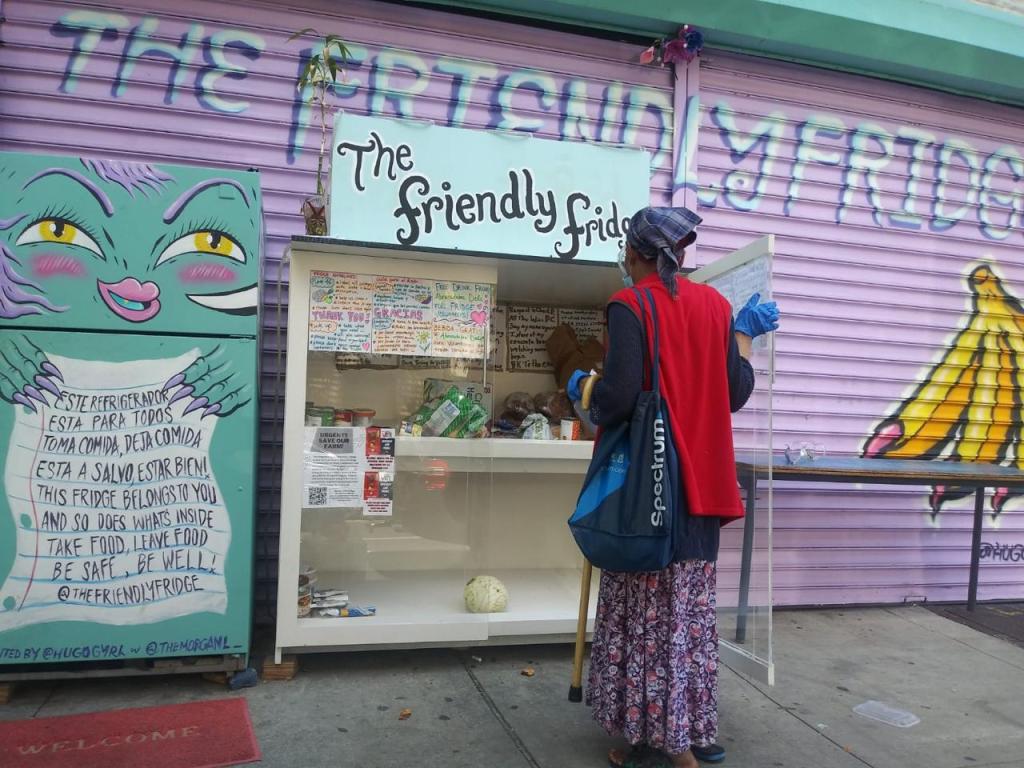 La contingencia por COVID-19 ha traído graves consecuencias para todos aquellos que se han visto afectados por el nuevo virus, los habitantes de la ciudad de Nueva York no son la excepción. Los índices de desempleo se han agravado y, junto con ellos, la inseguridad alimentaria que aqueja a muchos de sus habitantes, esto ha motivado a la comunidad para tejer una red de apoyo en forma de coloridos refrigeradores colocados en las banquetas y disponibles las 24 horas, para que cualquiera pueda tomar o dejar alimentos con total libertad.