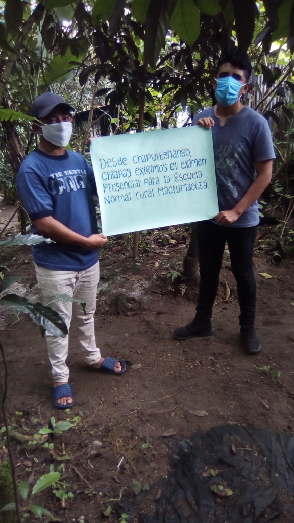 Jóvenes indígenas aspirantes a ingresar a la Escuela Normal Rural Mactumactzá, piden al gobernador de Chiapas, Rutilio Escandón Cadenas que reconsidere su decisión de cancelar el examen presencial, el cual había sido programado para el 14 de agosto, pero que un día antes de esa fecha se les informó que se realizaría de manera virtual.