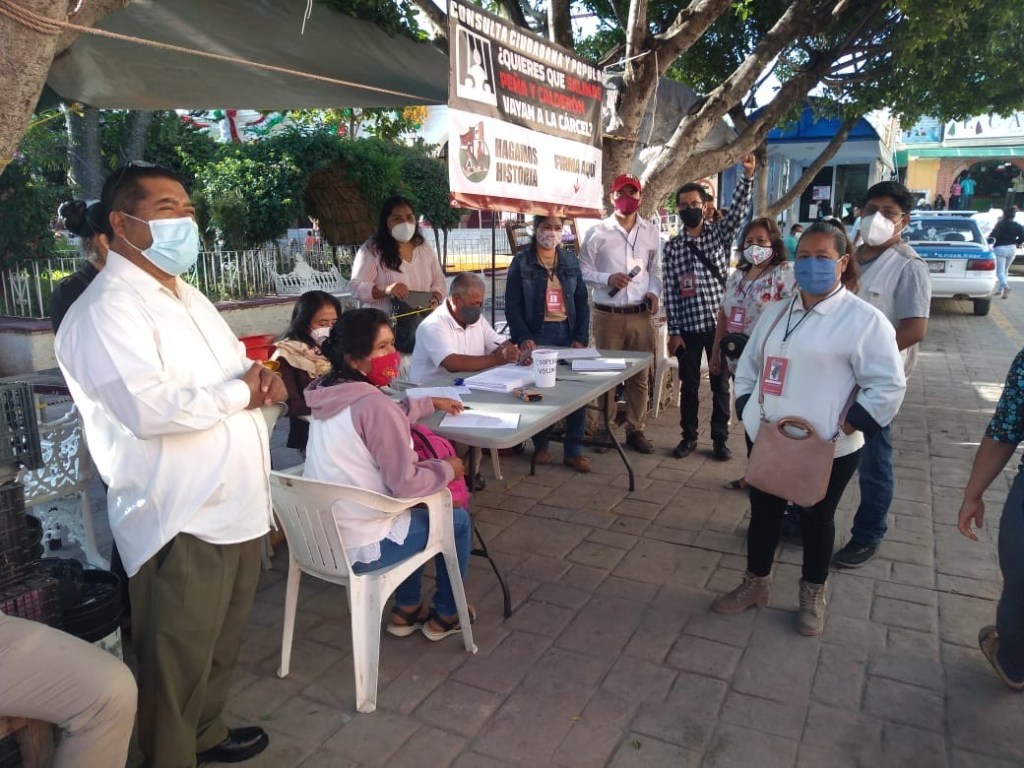 Explicaron que el objetivo de la consulta es primero que se apruebe y sea vinculante para después investigar a los ex presidentes, y si se les encuentra delitos, que estamos firmemente convencidos que así será, dijeron, sean castigados y que quede marcado en la historia de México que por primera vez se enjuició a ex mandatarios y que sea una lección para todo aquel gobernante que quiera seguir gobernando sin escrúpulos y seguir con prácticas corruptas.