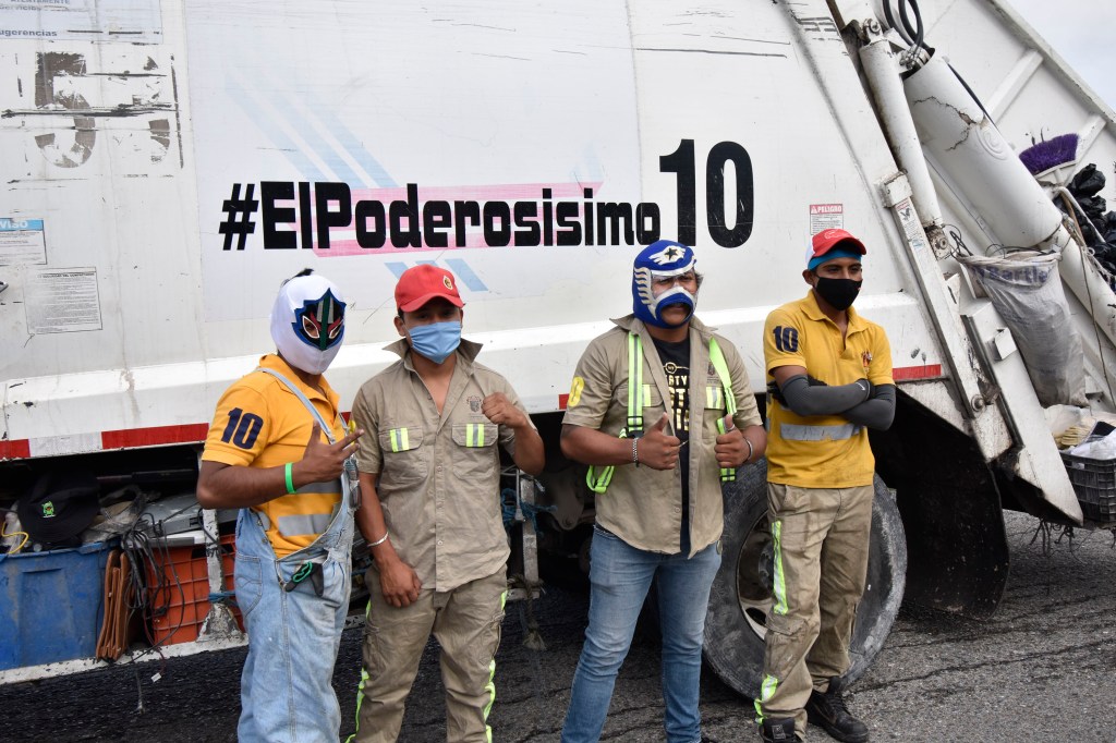 Esto derivado de que los operadores del camión recolector de basura marcado con el número 10, también conocido como ‘El Poderosísimo 10’ realizaron un video en TikTok donde simulaban ser los luchadores ‘Mascara Sagrada’ y ‘Aerostar’, con la famosa canción del Conjunto África – Los Luchadores, en una contienda que termino con un conteo de 3 segundos, luego de un mortal hacia atrás sobre uno de sus compañeros que quedo postrado en un costal lleno de botellas de plástico reciclado.