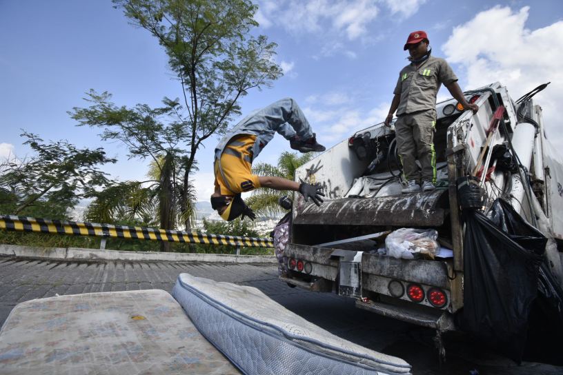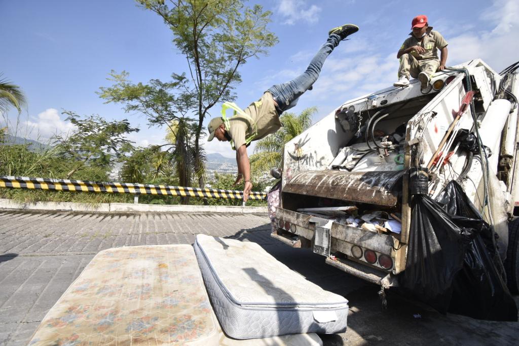 Antes de finalizar la entrevista, misma que se fue desarrollando durante el recorrido que hacen para recoger basura, una familia tiró 3 colchones viejos, mismos que los jóvenes aprovecharon en ese momento para practicar otros lances y acrobacias.