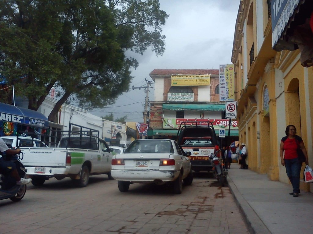 Sin pasos peatonales a nivel de banqueta, sin rayas de cebra, así son las calles de «la ciudad de Tlapa». El comercio informal como el formal ocupan el cien por ciento de las rampas.