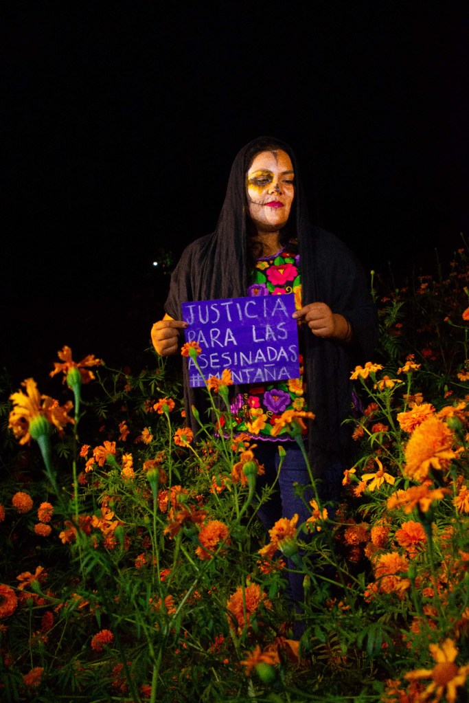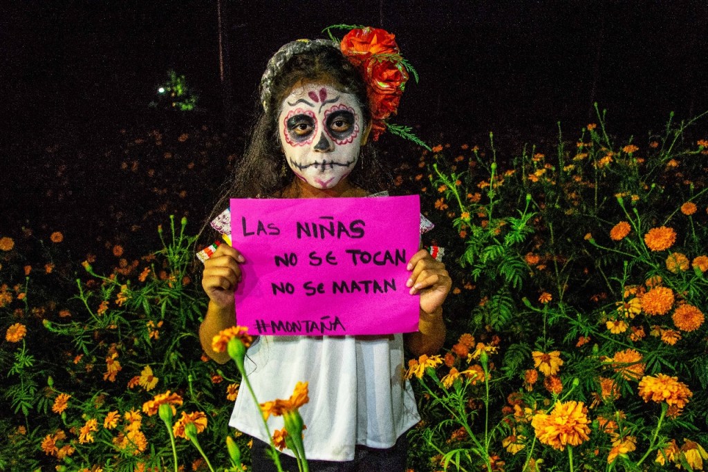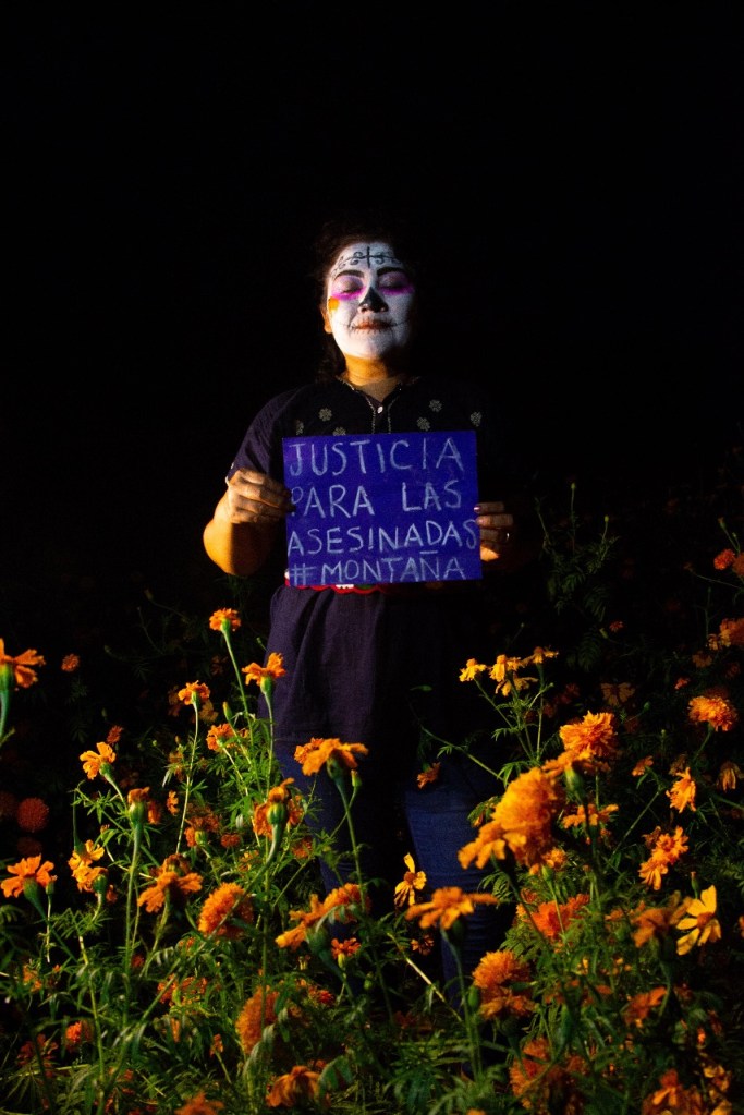 A través de carteles en medio de los campos de las flores de cempasúchil mostraron frases como: «las niñas no se tocan, no se matan», «En la Montaña de Guerrero la única muerte que queremos es la del patriarcado», además, dijeron que el sistema y sus instancias garanticen condenas al agresor, al feminicida.