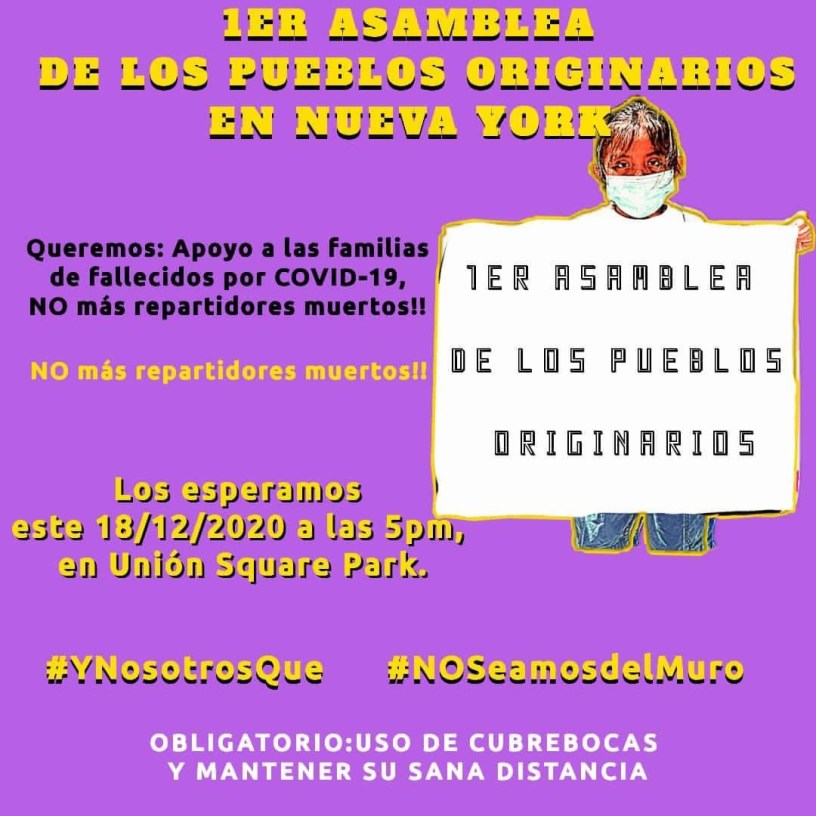 Activistas indígenas migrantes de la Montaña de Guerrero y de distintos lugares de Abya Yala, propondrán la creación de un Consejo de Pueblos Originarios en la que será la Primer Asamblea de Pueblos Originarios en Nueva York, para exigir entre otras demandas; intérpretes indígenas en el consulado, apoyo a familiares de fallecidos por Covid19, luego de seis meses sin contar con apoyos.