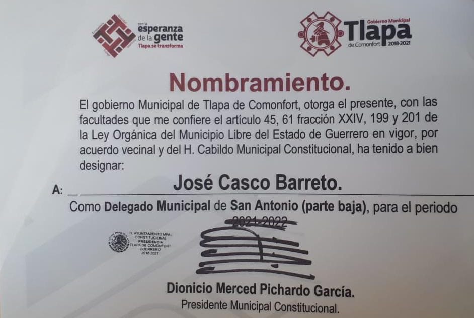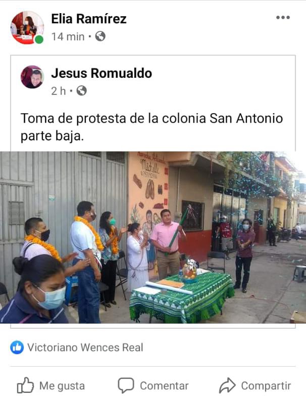 Sin embargo, a pesar del posicionamiento ciudadano, el grupo petista fue respaldado oficialmente por el ayuntamiento según se observó en documentos de los cuales se obtuvo imagen. El grupo realizó un acto con alrededor de 40 personas, usando un aparente bastón de mando.