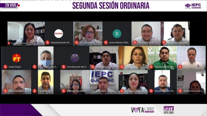 Chilpancingo, Gro., 24 de febrero de 2021.- El Consejo General del Instituto Electoral y de Participación Ciudadana del Estado de Guerrero (IEPCGRO) desarrolló su Segunda Sesión Ordinaria, de forma virtual, en la que emitió diversas notificaciones, avisos y resoluciones.
