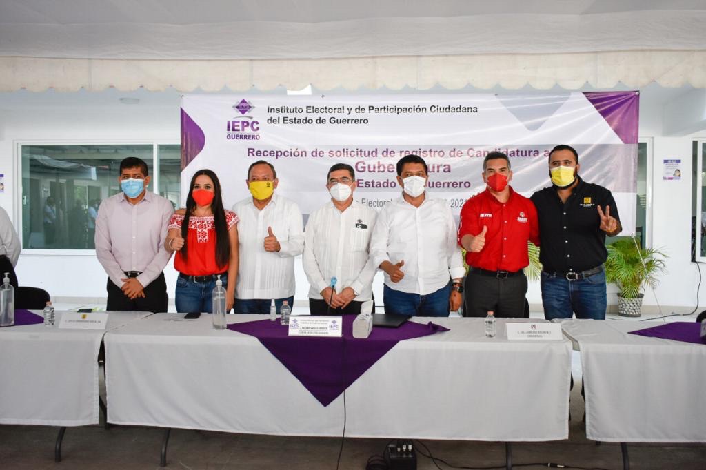 En el marco del Proceso Electoral Ordinario de Gubernatura del Estado, Diputaciones Locales y Ayuntamientos 2020-2021, las Consejeras y Consejeros Electorales, así como el Secretario Ejecutivo del IEPCGRO, recibieron la solicitud del registro de la candidatura común de Mario Moreno Arcos, al cargo de Gubernatura del Estado, presentada por los partidos políticos Revolucionario Institucional (PRI) y de la Revolución Democrática (PRD), a través de los ciudadanos Rafael Alejandro Moreno Cárdenas, Presidente del Comité Ejecutivo Nacional del PRI, y Alberto Catalán Bastida, Presidente de la Dirección Estatal Ejecutiva del PRD en Guerrero.