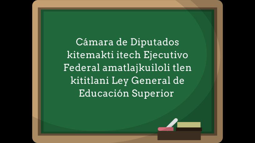 In Camara de diputados okinankili amatlajkuiloli kampa motemaktiya inin Ley General de Educación Superior uan kipojpoloa in Ley para la Coordinación de la Educación Superior. Omopanolti ipan Ejecutivo Federal ika motenankilis.
