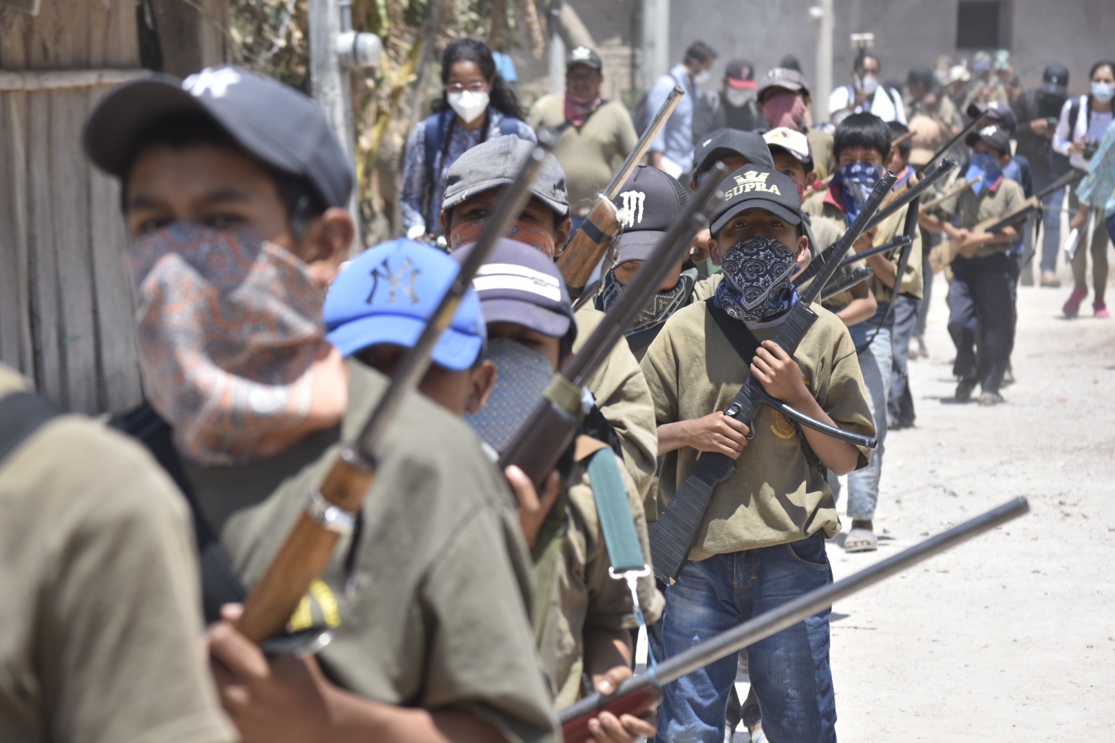 Los ‘niños comunitarios’, como se les ha conocido a nivel internacional, van desde los 7 hasta los 14 años de edad, reciben adiestramiento táctico tipo militar para disparar y saber posicionarse con las armas, pero solamente los que tienen más de 12 años usan armas de verdad, mientras que los más pequeños usan armas de madera o palos que simulan y que los mismos niños dicen que son Ak-47 (cuernos de chivo) o AR-15.