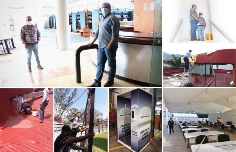 Chilpancingo, Gro., a 30 de mayo del 2021.- El diputado Alfredo Sánchez Esquivel, presidente de la Junta de Coordinación Política del Congreso del Estado, informó que derivado del uso transparente, racional y responsable de los recursos económicos de la institución, y a poco más de tres meses de haber asumido este órgano de gobierno, se ha iniciado con el mantenimiento y remodelación de los distintos espacios de la sede legislativa.