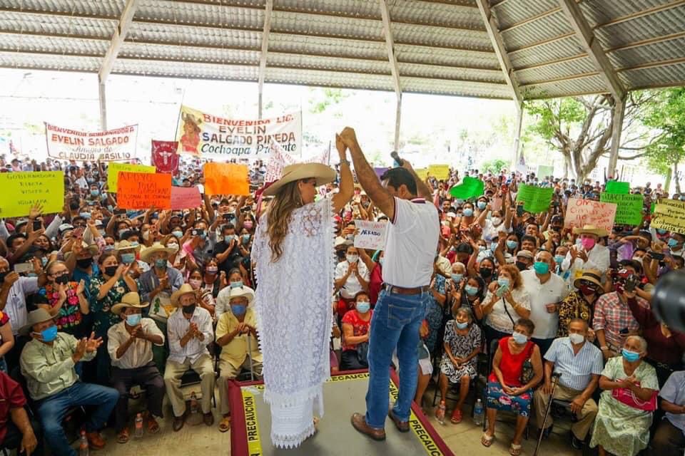 Ometepec, Marquelia y Copala, Gro., 27 de junio de 2021.- “Tienen a una gobernadora amiga y aliada de la Costa Chica”, afirmó la primera mujer que gobernará Guerrero, Evelyn Salgado Pineda, al continuar su gira de agradecimiento por las siete regiones del estado y arribar este domingo a los municipios de Ometepec, Marquelia y Copala, donde tuvo cálidas bienvenida de los costachiquenses, ante quienes refrendó su compromiso de encabezar un gobierno de la mano del pueblo, con “menos discursos y más recursos” para servir a la gente.