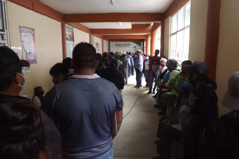 Malinaltepec. Adultos mayores y personas con discapacidad que cobran el apoyo económico en las oficinas de Telecom ubicado en el edificio de la coordinación municipal de la cabecera de Malinaltepec, señalaron a gritos a los servidores de la Nación y los aprendices, quienes acomodaban la gente que estaban llegando en una fila alterna, ya que son de las comunidades de donde son originario, dejando atrás a la gente que llegó temprano que está en una fila larga, que viene de lejos como; Potrerillo, Cocuyul, Mezon de Ixtlahuac, Colombia de Guadalupe, de la zona baja, el tejocote y las colonias de la cabecera municipal.