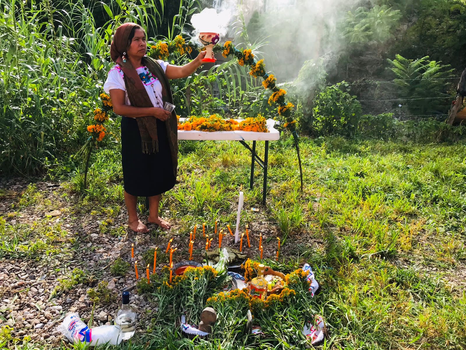 La rezandera fue la maestra nahua Diodira Pantaleón de la comunidad náhuatl de Xalatzala. Estuvieron algunos líderes regionales y también los acompañó el delegado regional de servicios educativos Juan Tenorio, hablante de náhuatl. Un maestro de la nación Ñuu Savi dio un posicionamiento después del ritual que empezó a las ocho y terminó 9:30 de la mañana.