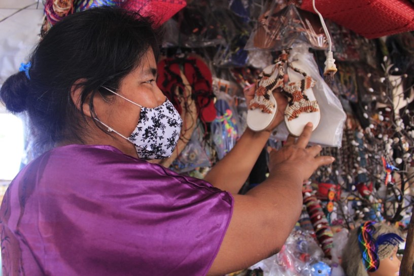 Dominga Mateo de la Cruz es artesana, elabora huaraches, pulseras, diademas, jarros y hasta collares. Su creatividad no tiene límites, tampoco su valentía.