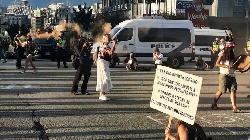 Activista en defensa de la tierra: “No solo es muy importante proteger a estos árboles contra la incursión de las empresas en los territorios pacheedaht y ditidaht, que no han sido cedidos por los indígenas al Estado, donde están robando los recursos naturales de los pueblos originarios, sino que también tenemos que proteger a esos árboles porque conservan gran cantidad de agua, lo que ayuda a combatir el cambio climático y a prevenir los incendios forestales. Los necesitamos más que nunca en este momento”.