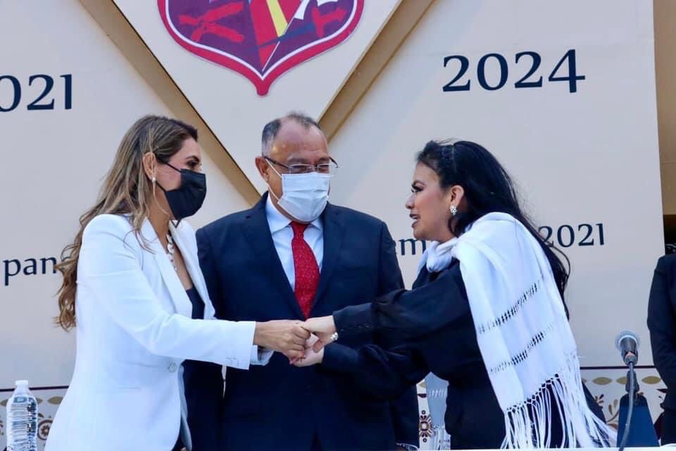 Más tarde en Chilpancingo, la gobernadora electa estuvo presente en la renovación del Ayuntamiento encabezado por la alcaldesa Norma Otilia Hernández Martínez, destacando el avance de la Cuarta Transformación de la mano de las mujeres.
