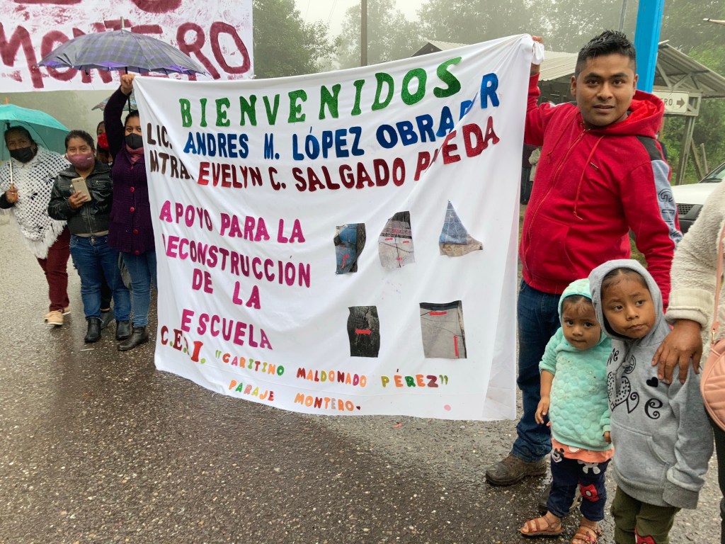 Durante su traslado por tierra en estos tres municipios, bajando desde Tlapa hasta San Luis Acatlán, el Presidente Andrés Manuel López Obrador y la gobernadora Evelyn Salgado Pineda, recibieron el cariño de la población de las comunidades de esta zona quienes, a pesar de la lluvia, con música de viento y vivas, celebraban la presencia del tabasqueño en esta zona de mayor índice de marginación de Guerrero.