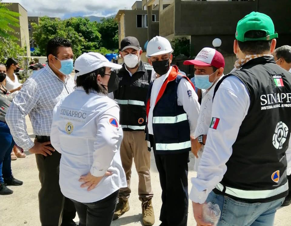Acapulco, Gro., 26 de octubre de 2021.- Con la finalidad de supervisar y dar seguimiento a las afectaciones que originó el sismo del pasado 7 de septiembre en las viviendas de la Unidad Habitacional «Cantaluna», el secretario de Protección Civil del Estado, Roberto Arroyo Matus y la Coordinadora Nacional de Protección Civil, Laura Velázquez Alzúa, se reunieron con las familias damnificadas para atender sus peticiones.