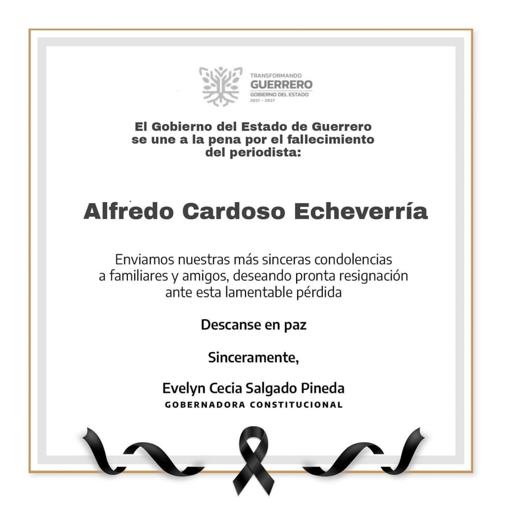 La gobernadora de Guerrero condenó el asesinato del periodista Alfredo Cardoso Echeverría, perpetrado en Acapulco y ofreció sus condolencias a la familia del fundador del medio digital Las Dos Costas, por su lamentable pérdida.