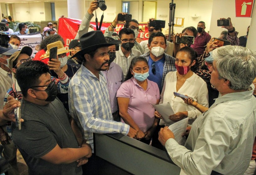 El vocero del Consejo de Ejidos y Comunidades Opositoras a la presa la Parota (Cecop), Marco Antonio Suástegui Muñoz fue de los representantes de organizaciones que entregó el documento y dio su postura al respecto.