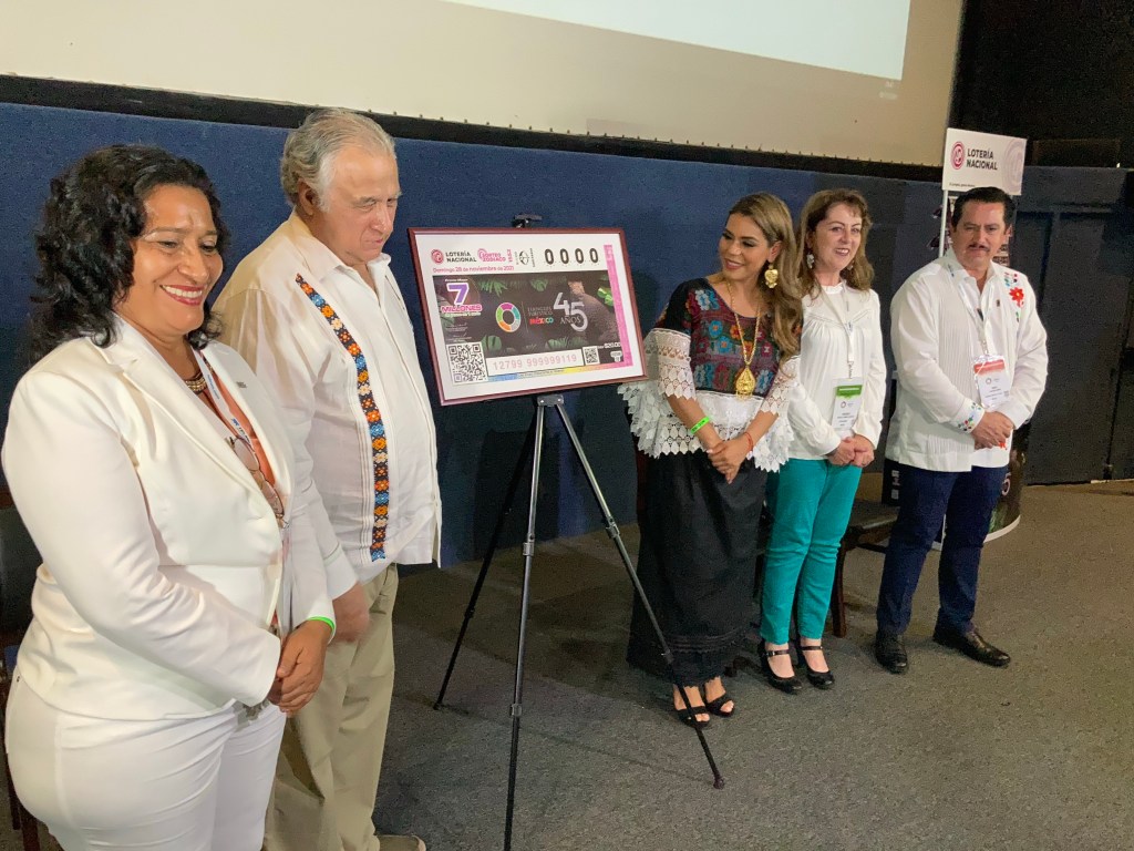 Evelyn Salgado también estuvo presente en la develación del billete de la Lotería Nacional alusivo a la 45 edición del Tianguis Turístico; además, realizó un recorrido por los pabellones de los estados que participan en el máximo evento del turismo en el país, invitándolos a Guerrero el próximo año.