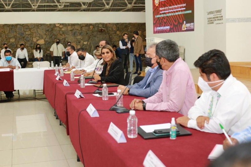 En Casa Guerrero, la gobernadora, junto al Director General del Centro SCT Guerrero, Ricardo Alarcón Abarca; el Coordinador General de Infraestructura Indígena del INPI, Hugo Lino Mendoza Sánchez; la secretaria de Obras Públicas y Ordenamiento Territorial, Irene Jiménez Montiel, dieron a conocer a los ediles la estrategia y el esquema a seguir para que el programa se cumpla.