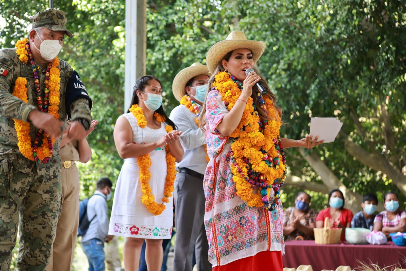 Ante habitantes indígenas, la gobernadora Evelyn Salgado Pineda, envío un reconocimiento al Presidente Andrés Manuel López Obrador, por su amor a Guerrero y a la Montaña y por la importante labor que realiza el Gobierno de México a través del Plan Nacional de Vacunación en Guerrero.