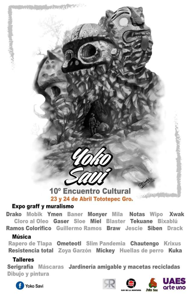 En este contexto de sincretismo indígena, se desarrolla el 10 Encuentro cultural Yoko savi, dentro del cual, las festividades religiosas de un pueblo na savi de la Montaña de Guerrero, incluyen el arte urbano, hiphop, música y talleres.