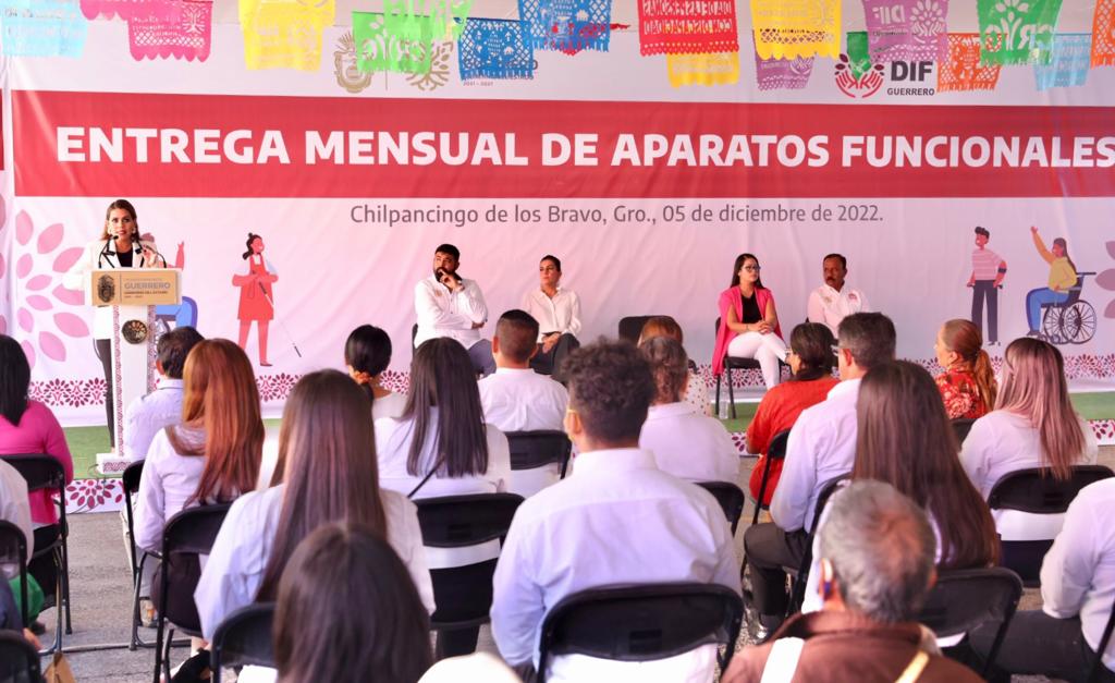 Chilpancingo, Gro., 05 de diciembre del 2022.- La gobernadora Evelyn Salgado Pineda y la presidenta del Sistema Estatal DIF, Liz Salgado Pineda, encabezaron la entrega mensual de aparatos funcionales en el marco del «Día Internacional de las Personas con Discapacidad», beneficiando a más de 600 personas de las regiones Costa Chica, Centro, Acapulco y Costa Grande con una inversión de 1.8 millones de pesos, sumando durante este 2022 más de 2 mil apoyos entregados en todas las regiones de Guerrero.