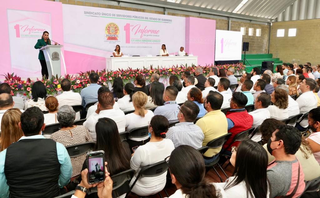En la casa suspegista en Chilpancingo, la mandataria estatal, expresó su reconocimiento a la líder sindical Adela Hernández Angelito por este primer año de trabajo al frente del Sindicato Único de Servidores Públicos del Estado de Guerrero, ponderando los intereses de la base trabajadora y bajo una misma línea de transparencia y combate a la corrupción en todos los niveles.