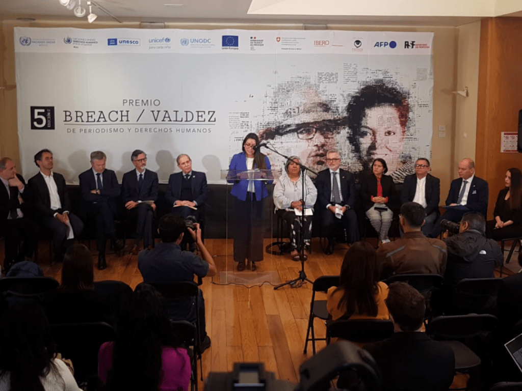 Ciudad de México, 24 de enero de 2023. – El Centro de Información de las Naciones Unidas (CINU); la Oficina en México del Alto Comisionado de las Naciones Unidas para los Derechos Humanos (ONU-DH); la Organización de las Naciones Unidas para la Educación, la Ciencia y la Cultura (UNESCO); el Fondo de Naciones Unidas para la Infancia (UNICEF); la Oficina de las Naciones Unidas contra la Droga y el Delito (UNODC); la Delegación de la Unión Europea en México (UE); la Embajada de Francia en México; la Embajada de Suiza en México; el Programa Prensa y Democracia de la Universidad Iberoamericana y su área de Periodismo; la Agencia Francesa de Prensa (AFP) y Reporteros sin Fronteras (RSF) lanzaron la quinta edición del Premio Breach / Valdez de Periodismo y Derechos Humanos.