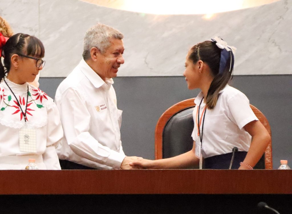 Estudiantes ganadores de la décimo quinta edición del Parlamento Infantil, vivieron la experiencia de ser diputados por un día y compartieron experiencias e inquietudes al lado de los legisladores locales y funcionarios públicos estatales y municipales, quienes reconocieron el esfuerzo y compromiso de los participantes para generar mejores condiciones de vida.