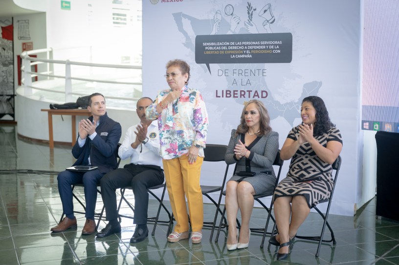 Al participar en esta actividad, Anacleta López Vega señaló el compromiso del Estado para cumplir con la obligación de proteger, respetar, garantizar y promover los derechos humanos, así como reconocer la labor de las personas periodistas y defensoras. Asimismo, María de Lourdes Martínez Cisneros remarcó la importancia del ejercicio de difusión que se realiza desde el Gobierno Federal a través de la “Campaña de Frente a la Libertad”. Finalmente, Cecilia Narciso Gaytán mencionó que este esfuerzo colectivo ayudará a mejorar las funciones de las personas servidoras públicas, así como a generar las alianzas necesarias para fomentar y garantizar el respeto a los derechos humanos.