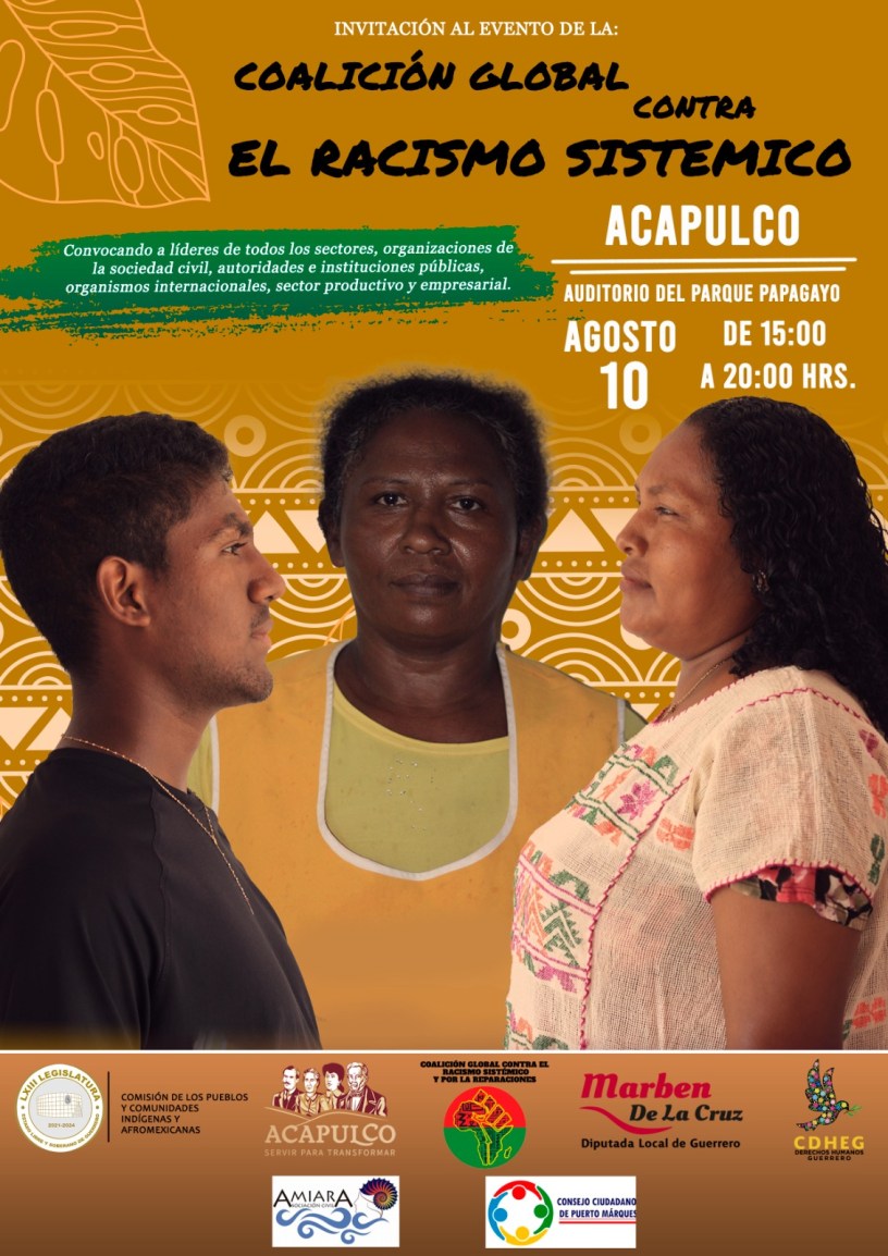 Acapulco, Gro. Con el objeto de visibilizar y contribuir al efectivo reconocimiento de los derechos humanos de los pueblos afromexicanos, en apego a los instrumentos internacionales y la Constitución Política de los Estados Unidos Mexicanos, la diputada Marben de la Cruz Santiago anunció este viernes el acto de Presentación y Adhesión a la Coalición Global Contra el Racismo Sistémico y por las Reparaciones.