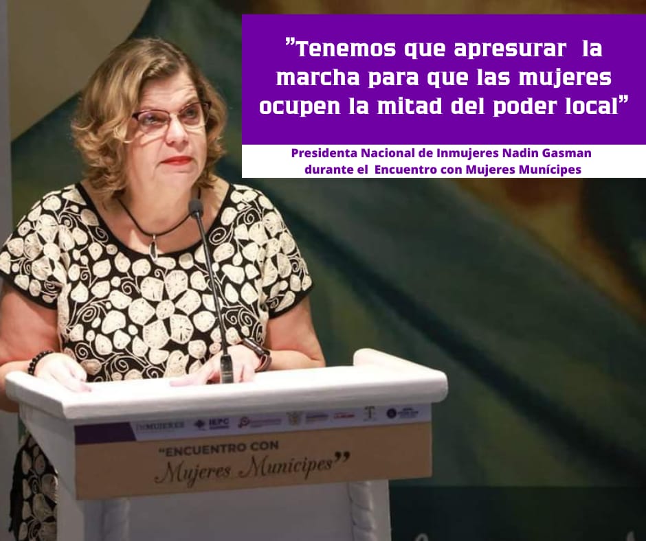 En el evento se contó con la presencia de la Presidenta del Instituto Nacional de las Mujeres, Nadine Gasman Zylbermann, quien en su intervención dio a conocer que a nivel nacional el porcentaje de alcaldesas apenas alcanza el 26%, mientras para Guerrero llega al 27%, agregó que aunque las mujeres han avanzado políticamente existe el cuestionamiento de «¿Cómo continúa lo comenzado por nuestras predecesoras para garantizar que las que estemos y sobre todo las que vienen participemos plenamente en el ámbito público y político?, detalló que es necesario «apresurar la marcha para que las mujeres ocupen la mitad del poder local».