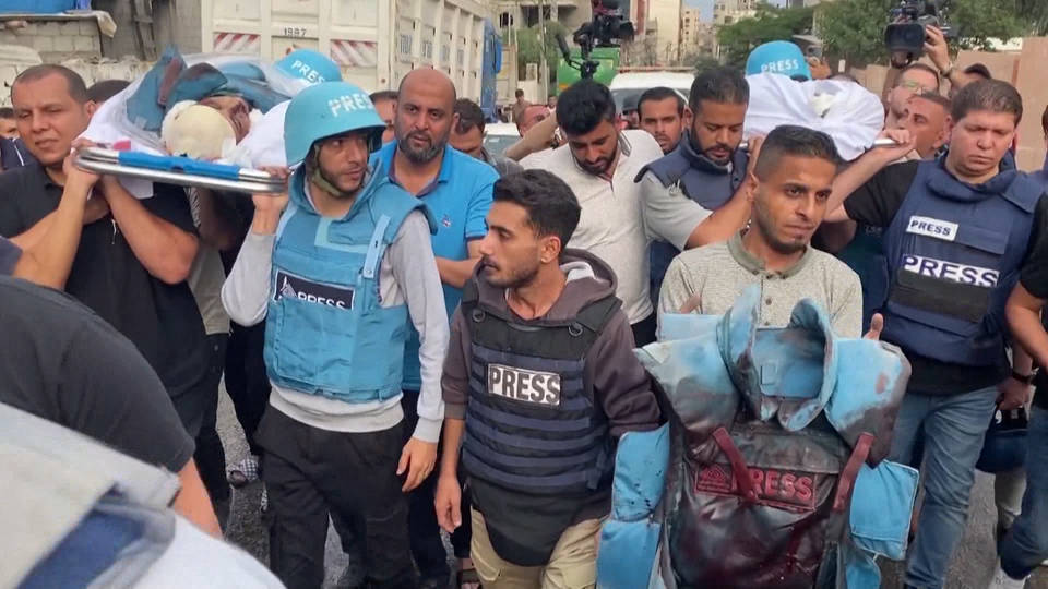 Entre los muertos registrados en Gaza hay al menos siete periodistas. El martes, trabajadores de medios de comunicación organizaron un funeral para dos de los periodistas asesinados, a quienes les colocaron cascos azules con la palabra ‘prensa’ escrita sobre sus cadáveres. La directora del comité de mujeres reporteras del sindicato de prensa local, Salam Khalil, fue hallada con vida junto a sus hijos bajo los escombros de un edificio que había sido bombardeado, después de que se la hubiera dado por muerta.
