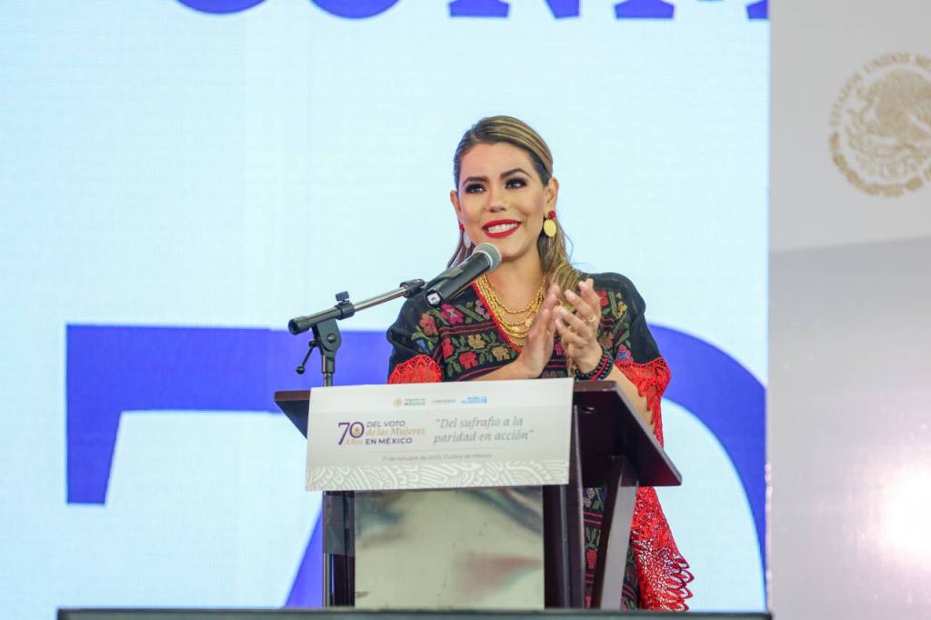 Ciudad de México., 17 de octubre del 2023.- “La transformación de México va sin duda de la mano de las mujeres. Hay retos pendientes, hay complejidades que debemos atender, sin embargo, celebremos los avances que en unidad todas hemos logrado”, afirmó la gobernadora Evelyn Salgado Pineda al participar en el acto conmemorativo por el 70 Aniversario del Voto de las Mujeres en México, “Del Sufragio a la Paridad en Acción”.