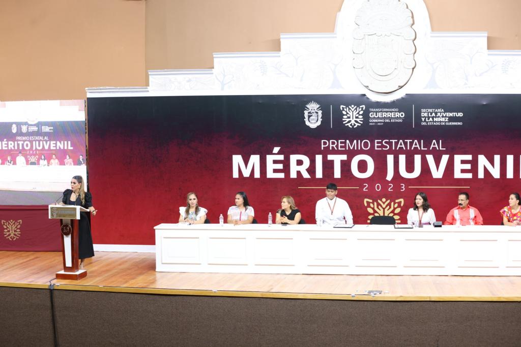 Chilpancingo, Gro., 20 de octubre del 2023.- “En la Cuarta Transformación los jóvenes juegan un papel fundamental, son quienes llevan la antorcha del cambio, la llama de la innovación y la energía para construir un México y un Guerrero próspero”, afirmó la gobernadora Evelyn Salgado Pineda al reconocer a las y los ganadores del Premio Estatal al Mérito Juvenil 2023, cuya conducta, labor y trayectoria, son ejemplo de desarrollo humano, crecimiento profesional y buenas prácticas.