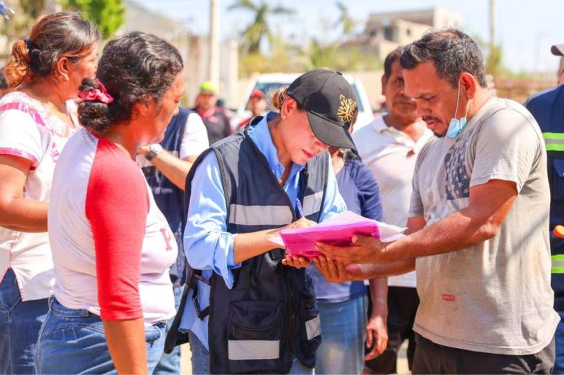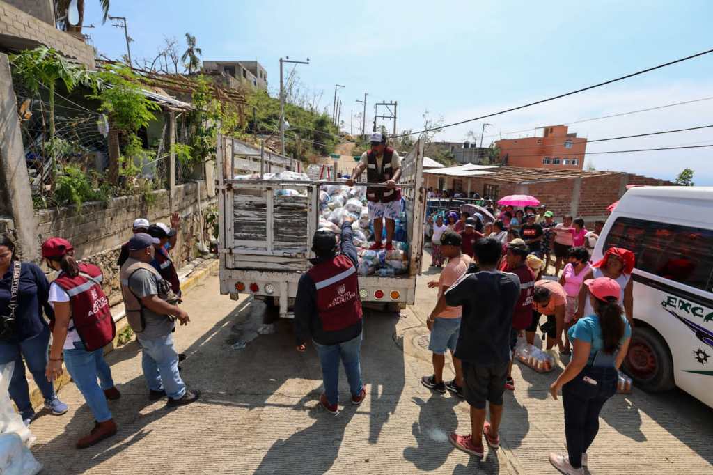 Acapulco, Gro., 06 de noviembre de 2023.- Continuando con un intenso trabajo en territorio para atender las necesidades más apremiantes de la población que resultó afectada por el huracán Otis, la gobernadora Evelyn Salgado Pineda visitó la colonia Ex Campo de Tiro en donde visitó casa por casa para entregar apoyo alimentario, pipas de agua clorada, agua embotellada y kits de higiene personal para adultos y niños.