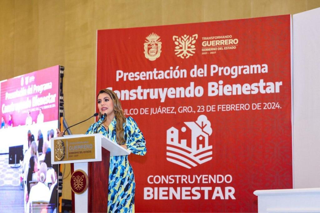 Acapulco, Gro., 23 de febrero de 2024.- «La meta que tenemos es transformar Guerrero desde los hogares, para construir comunidades más fuertes, para que la paz penetre en todas y cada una de las localidades, para que el desarrollo permee en las ocho regiones», señaló la gobernadora Evelyn Salgado Pineda durante la presentación del Programa Construyendo Bienestar, una estrategia integral que busca promover el mejoramiento de vivienda y la recuperación de espacios públicos en las zonas de mayor marginación en el estado.