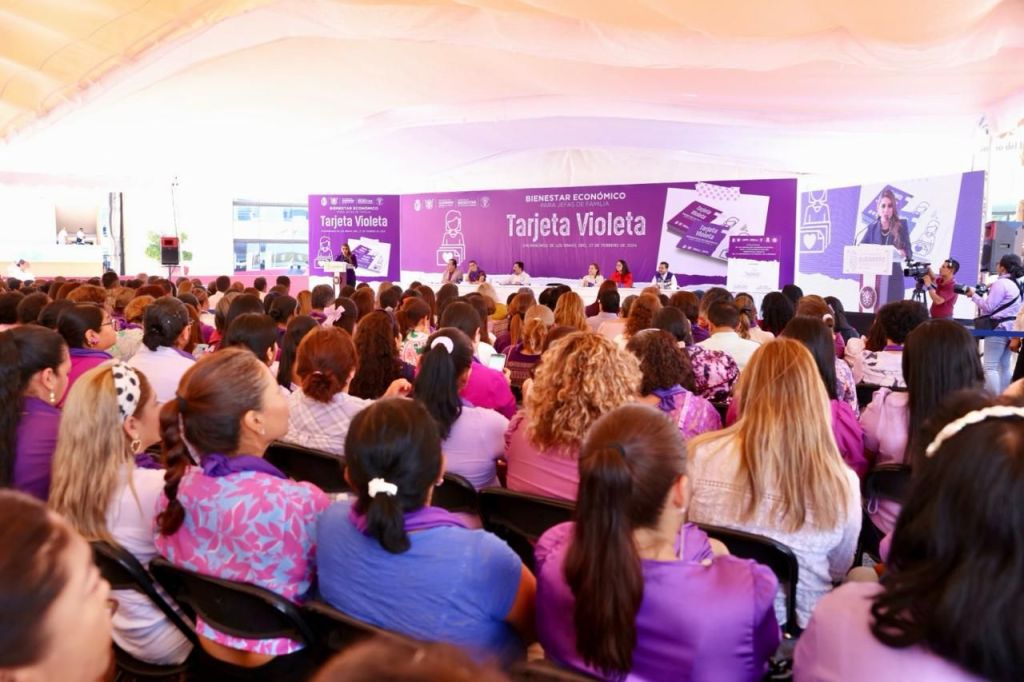 A través de la Tarjeta Violeta que busca ser un catalizador de cambio, se entregará a las beneficiarias un apoyo económico de 2 mil pesos bimestrales, mujeres de 18 a 64 años y 11 meses, jefas de familia en situación vulnerable o residentes de los Centros de Apoyo Interdisciplinario a Víctimas de Violencia (CAIV), quienes además podrán continuar con sus estudios, recibir cursos de capacitación en diversos oficios y habilidades y seguimiento médico y psicológico.