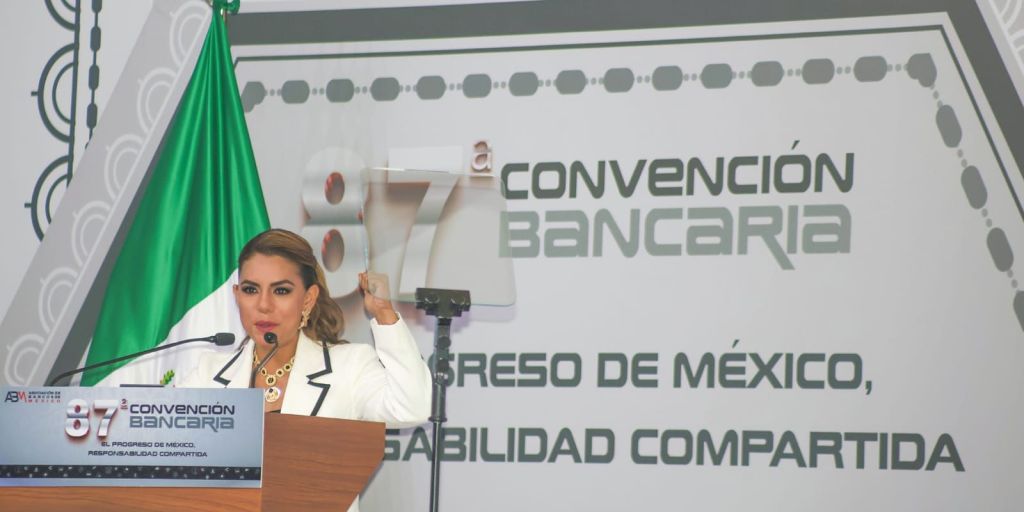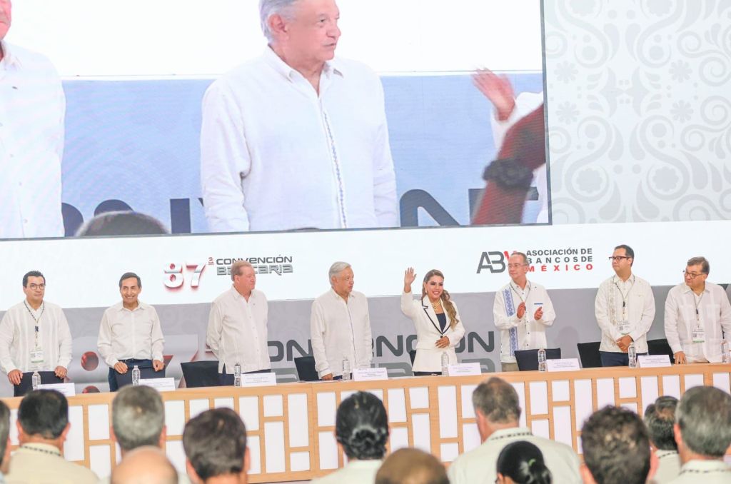 La gobernadora acompañó al presidente Andrés Manuel López Obrador al evento de clausura de la 87 Convención Bancaria