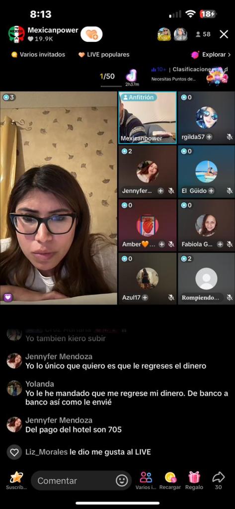 En el encuentro en TikTok, las y los afectados preguntaron a Palacios si el pago del hotel que no se usó se los devolvería. Ella nunca respondió.