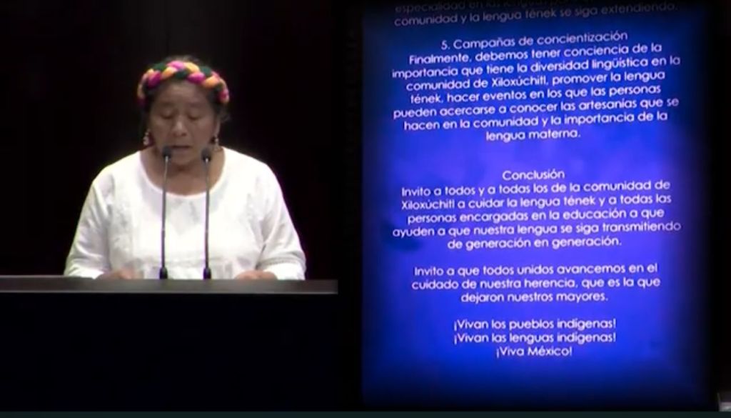 La Cámara de Diputados proporcionó en la sesión semipresencial de este miércoles, el uso de la palabra a María del Socorro Ramírez Bautista, hablante de lengua tének.